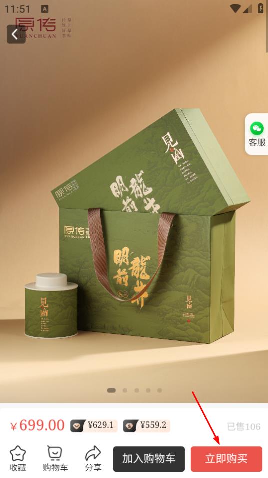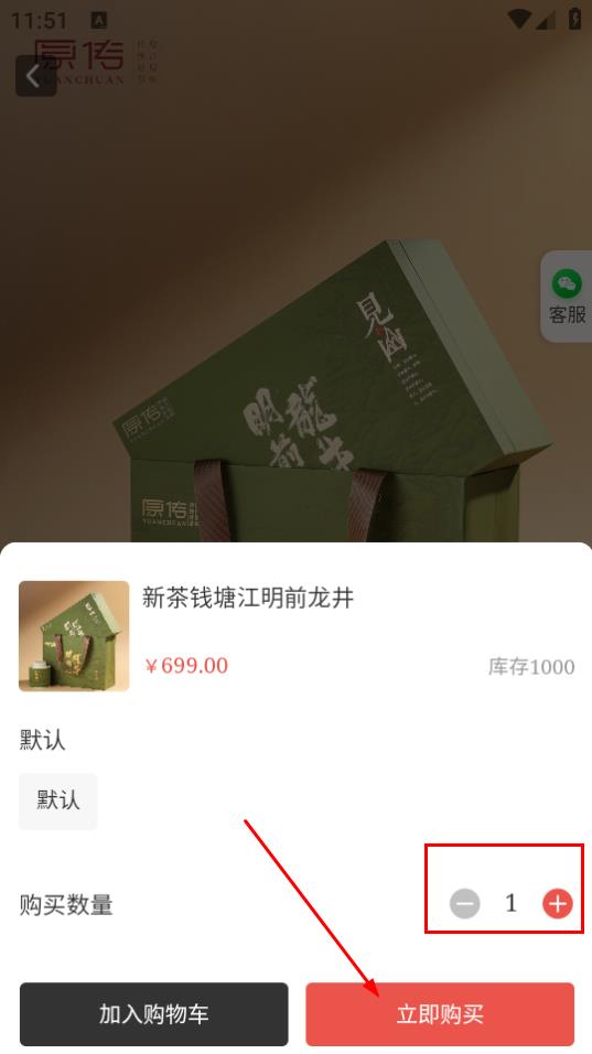 3、进入新茶钱塘江明前龙井详情页面后,点击立即购买按钮。