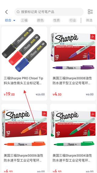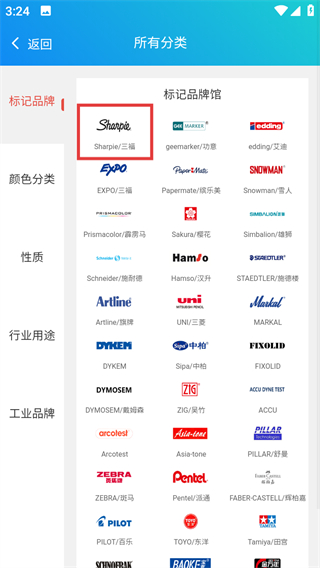 2、在所有分类页面,选择Sharpie三福品牌,进入该品牌商品列表页面。