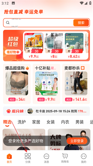 3、购后抢红包活动:用户完成商品购买后,可参与专属抢红包活动,在购物消费的同时获得额外福利,提升购物性价比与参与感。