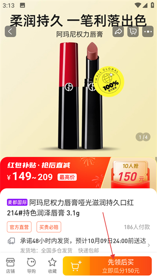 4、在商品详情页面,点击先领后买,即可完成购买操作。