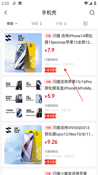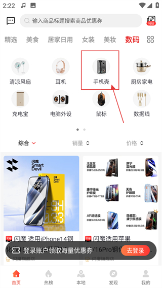 2、在数码分类页面,点击手机壳,进入手机壳商品列表页面。