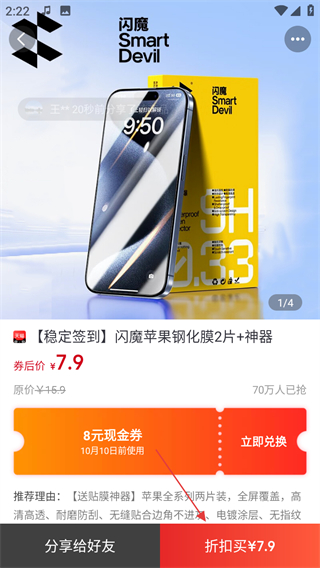 4、在商品详情页面,点击折扣买,即可购买该手机壳。