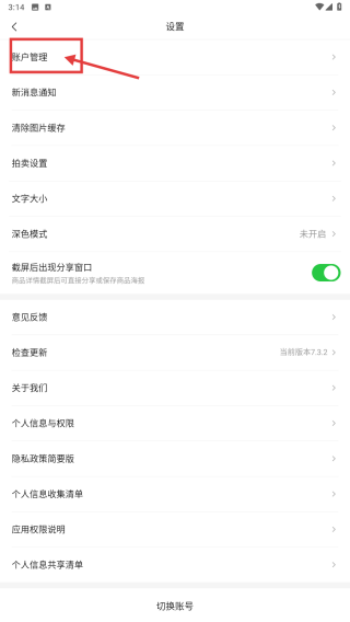 3、在设置页面,点击账户管理选项,进入账户管理界面。