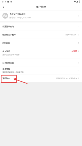 4、在账户管理界面,点击注销账户选项,进行账户注销操作。