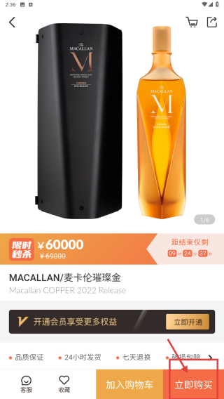 3、选择麦卡伦璀璨金商品条目,进入商品详情页面。