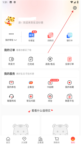 1、打开生活杉德APP,点击底部我的,进入个人的页面。