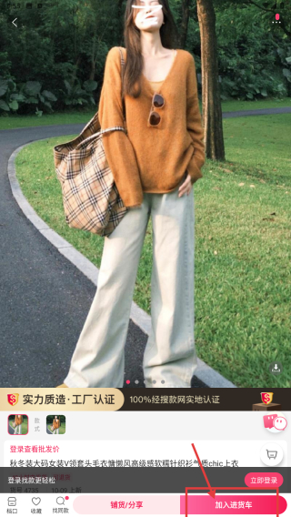 4、在详情页面,点击加入进货车按钮,将商品加入进货车。