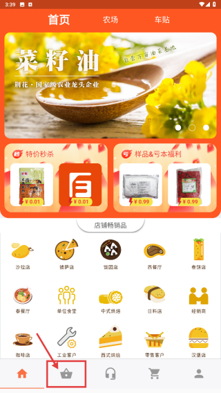 1、打开食品电商应用,点击底部购物车选项,进入商品浏览页面。