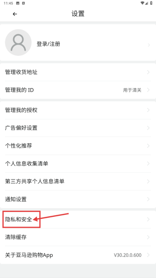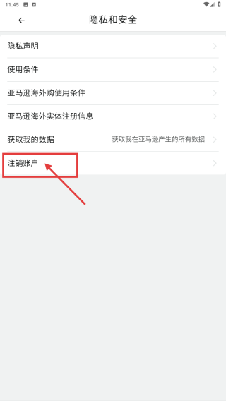 4、在隐私和安全页面,点击注销账户选项,发起账户注销操作。