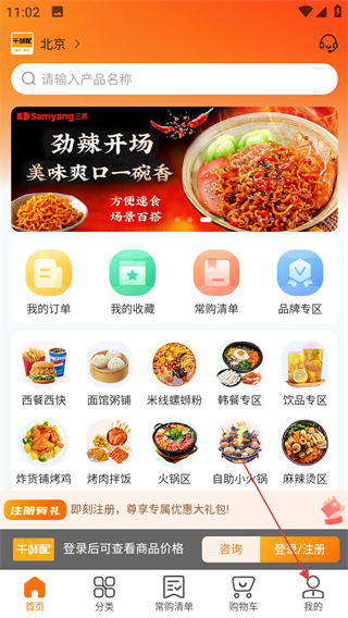 1、进入千鲜配首页,点击底部我的,进入个人页面。