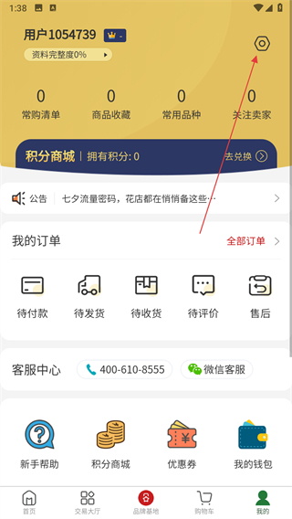 1、打开花伍APP,在个人页面,点击右上角的设置图标。