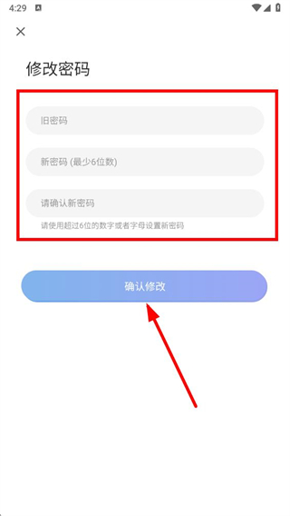 5、在修改密码页面输入旧密码、新密码并确认新密码,最后点击确认修改即可。