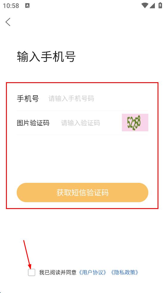 4、在输入手机号页面,勾选已阅读并同意相关协议,输入手机号码、图片验证码,点击获取短信验证码,后续输入短信验证码完成注册。
