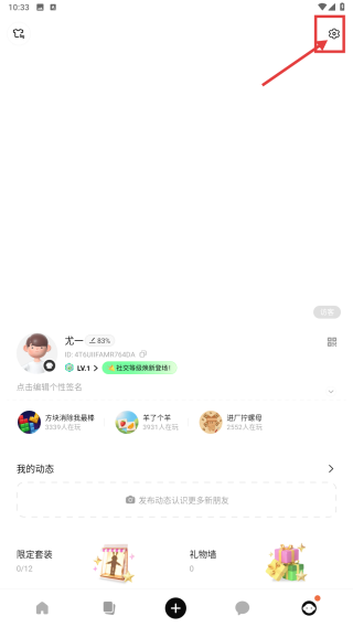 2、在个人中心,点击右上角设置图标,进入设置功能列表页。