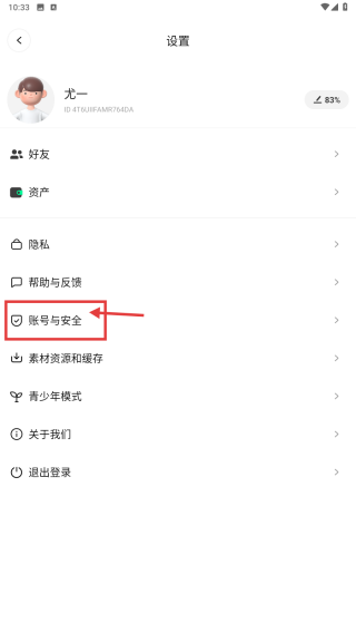 3、在设置页面,点击账号与安全选项,进入账号安全管理界面。