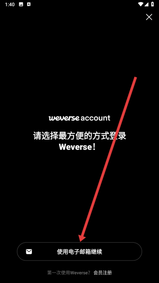 2、可以通过点击下方使用电子邮箱继续按钮,使用电子邮箱进行登录操作。