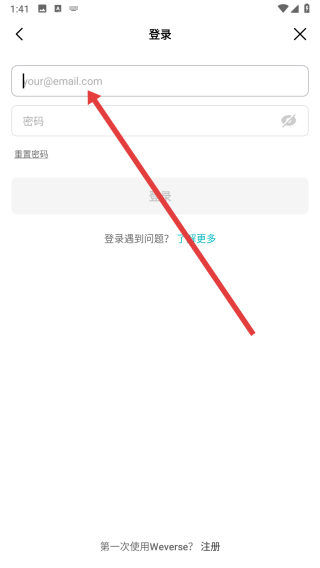 3、在进入到登录页面中,点击上方输入框输入要登录的电子邮箱账号。