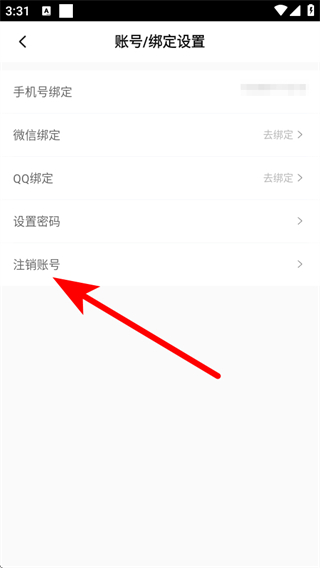 3、在账号绑定设置的页面,点击注销账号,进入注销说明页面。
