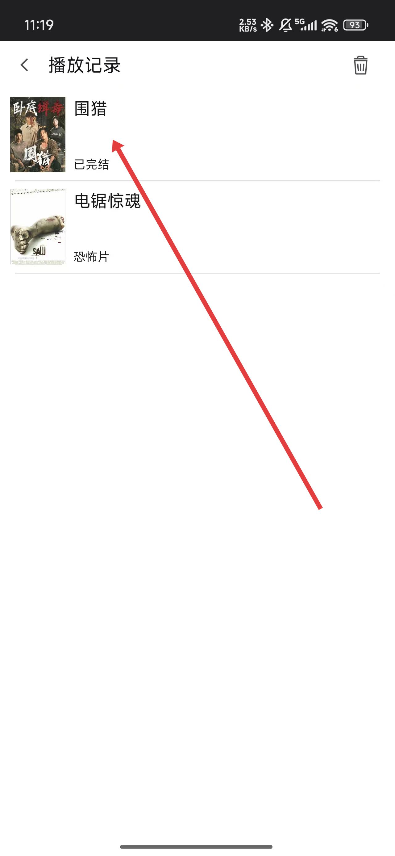 3、在进入到播放记录页面中,可以点击选择围猎进入观看。