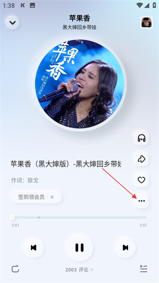 2、在歌曲播放页面,点击右侧...按钮,展开操作选项。
