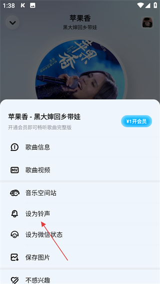 3、在展开的操作选项中,点击设为铃声,进入铃声设置相关页面。