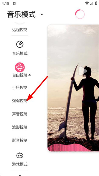 3、在自由控制的子选项中,点击强弱控制,进入强弱控制页面。