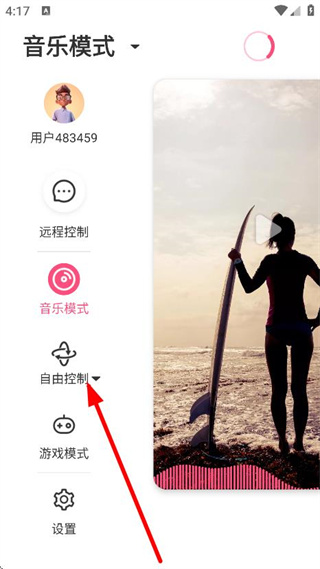 2、在展开的菜单中,点击自由控制,展开自由控制的子选项。