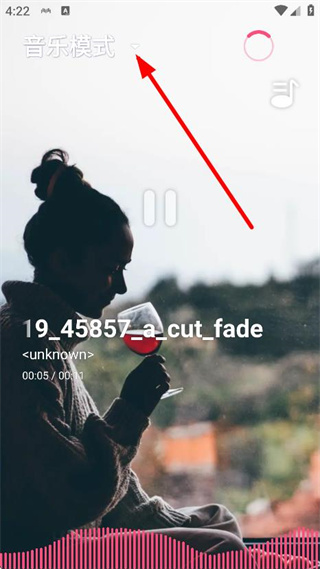 1、在音乐播放页面,点击音乐模式,展开功能选项栏。