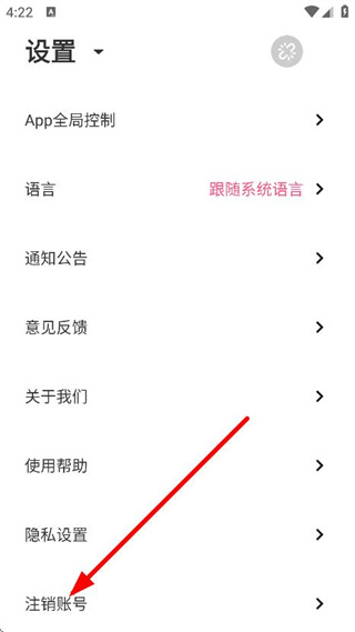3、在设置页面,点击注销账号,进入注销账号说明页面。