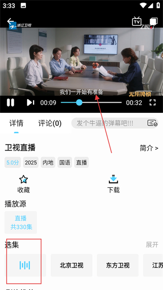 3、在选集区域选择浙江卫视,并点击屏幕可观看浙江卫视的直播。