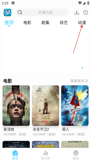 1、进入软件首页,点击顶部动漫标签,进入动漫分类页面。