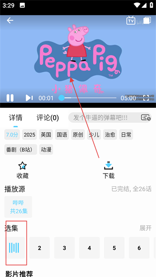 3、在动漫播放页面的选集区域选择集数如第一集,点击屏幕观看。