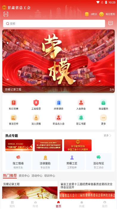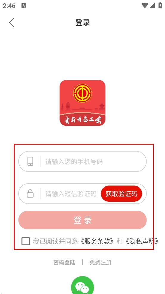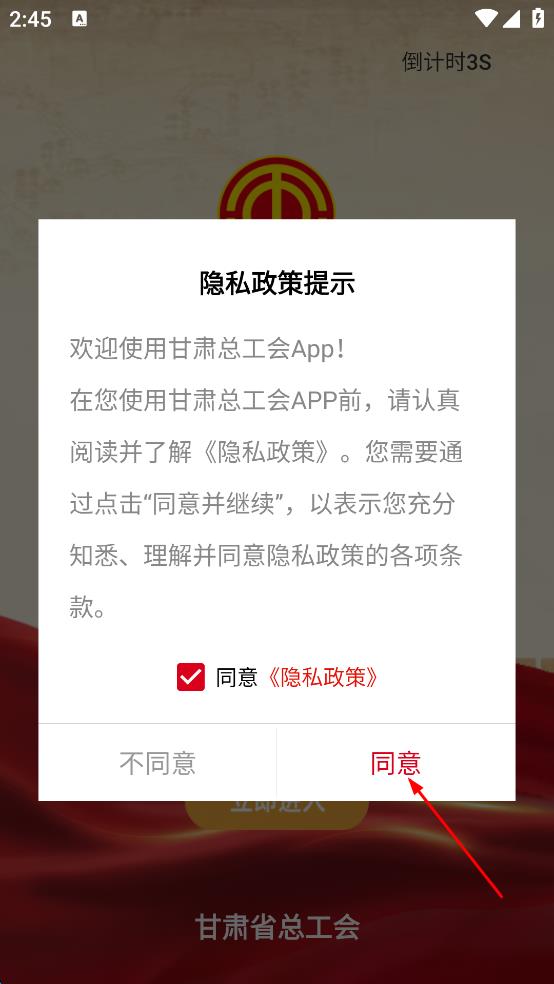 1、打开甘肃总工会,弹出隐私政策提示,点击同意,进入软件首页。