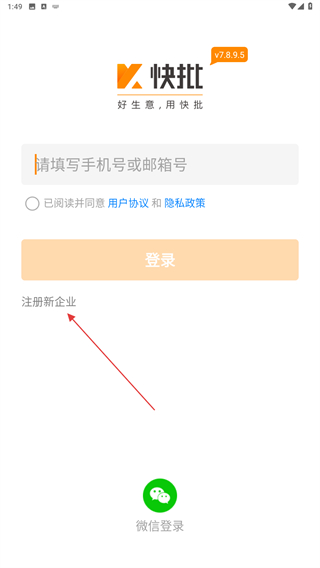 2、进入到登录的页面内,点击注册新企业的按钮。