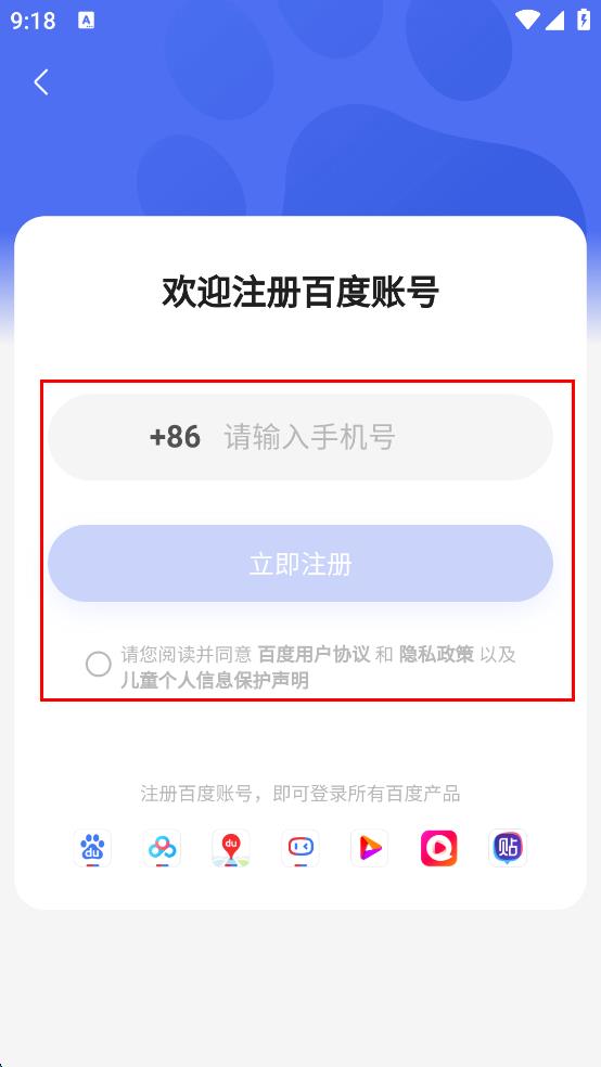 4、在注册百度账号页面,输入手机号,勾选相关协议,点击“立即注册”按钮完成注册,之后可登录使用。
