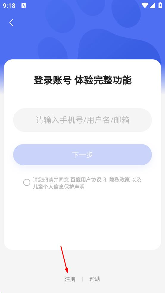 3、在登录账号页面,找到下方“注册”选项并点击,进入注册百度账号页面。