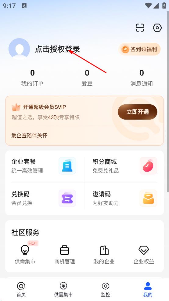 2、在个人页面,点击“点击授权登录”区域,进入登录账号页面。