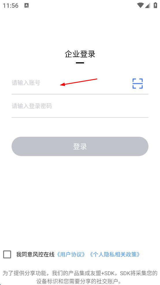 2、在企业登录界面,先在请输入账号输入框中,输入企业账号。