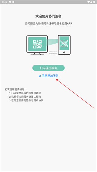 2、进入到首页内,点击or手动添加服务的功能按钮。