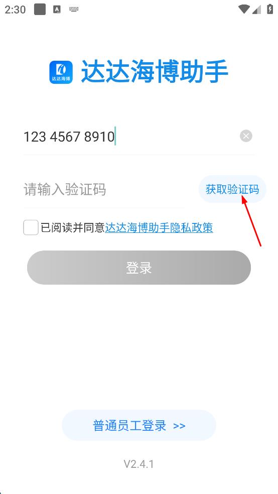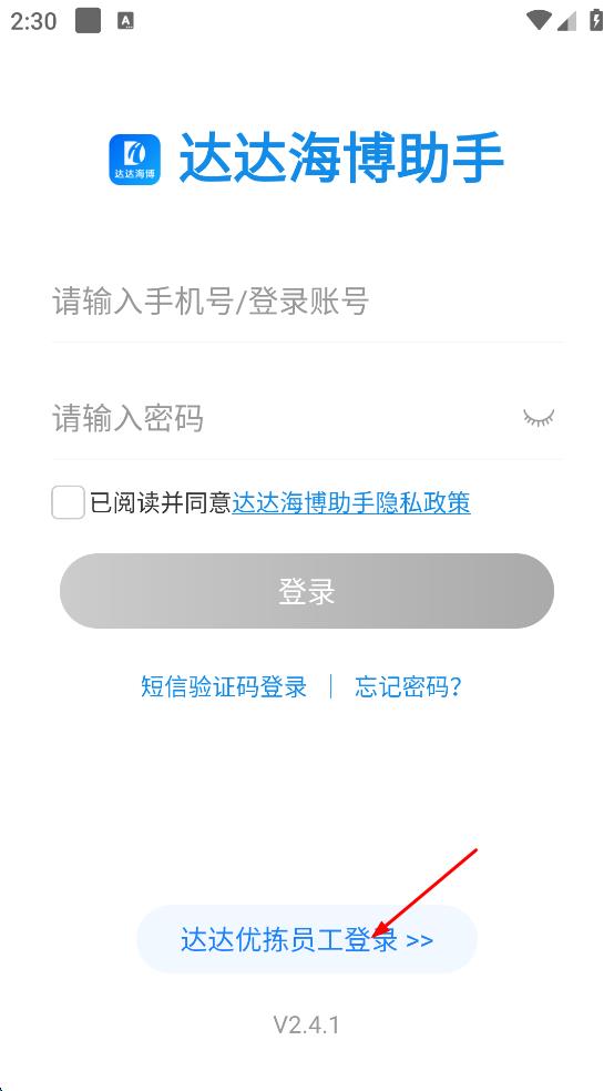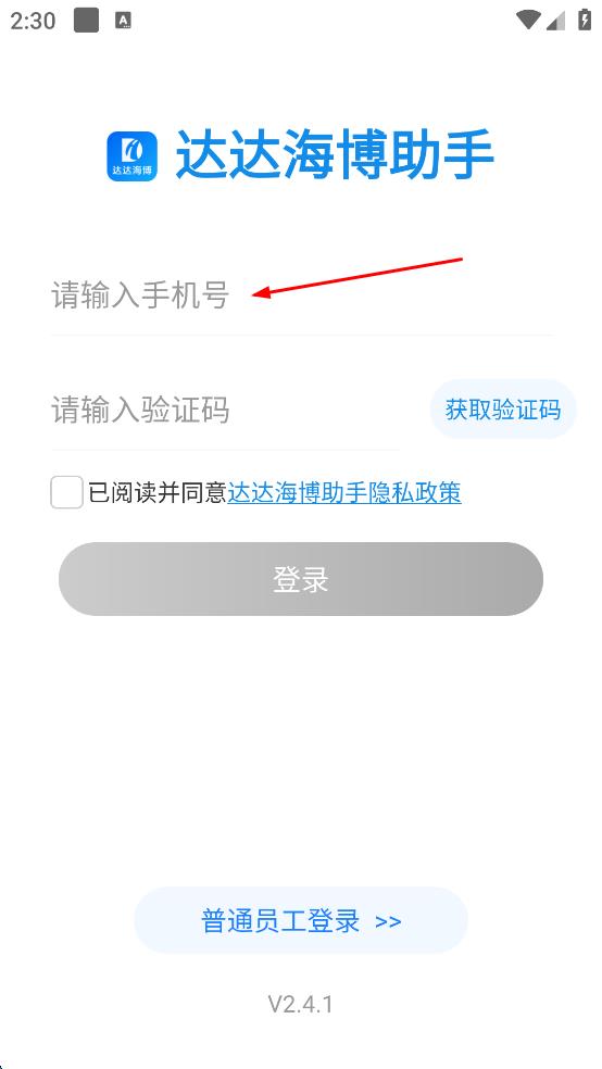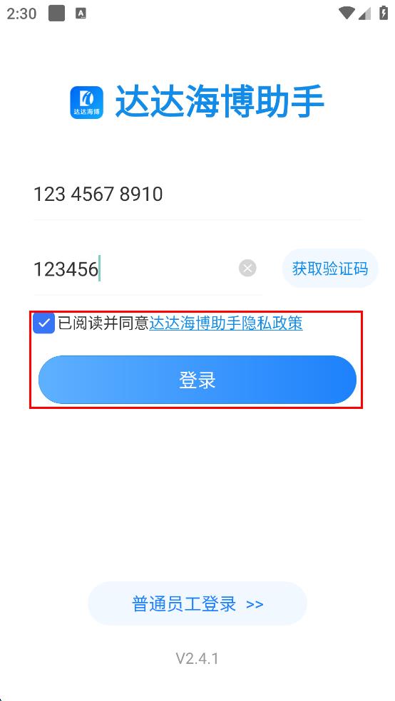 4、勾选“已阅读并同意达达海博助手隐私政策”,然后点击“登录”按钮。