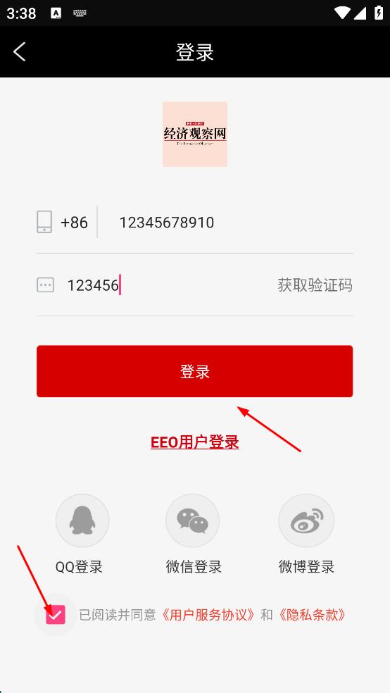 4、勾选“已阅读并同意用户服务协议和隐私条款”,然后点击“登录”按钮。
