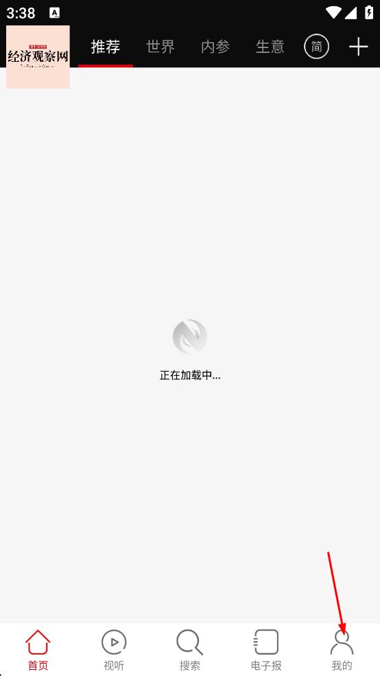 1、打开经济观察网APP,进入首页后,点击页面右下角的“我的”按钮。