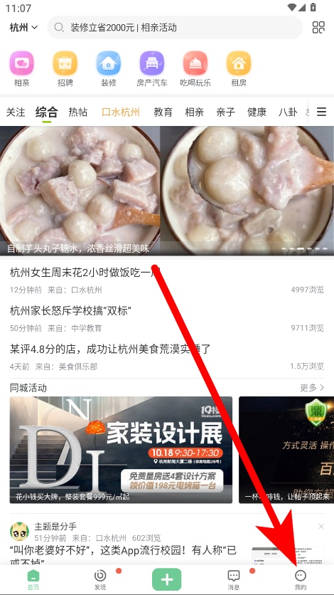 1、在19楼首页,点击右下角我的选项,进入个人页面。