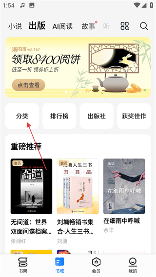 1、打卡掌阅,点击页面中的分类,进入分类页面。