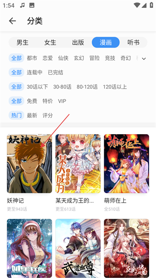 3、在漫画分类页面,选择喜欢的漫画,进入漫画详情页面。