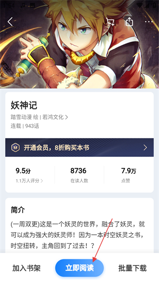 4、在漫画详情页面,点击立即阅读,即可阅读该漫画。