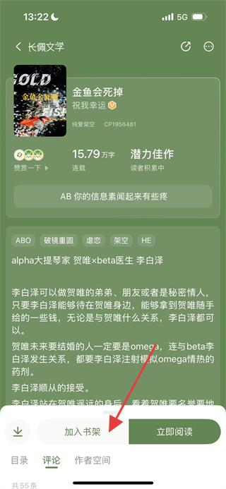 3、在书籍详情页面,点击加入书架,即可将该书籍加入书架。