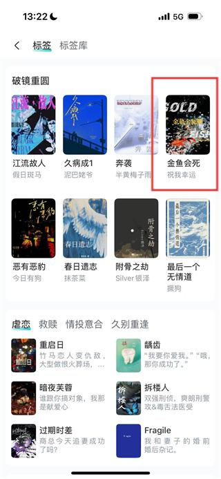 1、在长佩文学首页点击页面中的标签,进入标签页面。