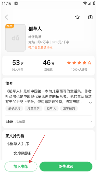 3、在书籍详情页面,点击加入书架,即可将该书籍加入书架。