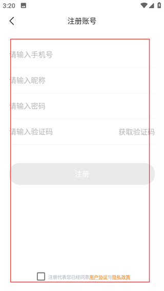 4、在注册账号页面,依次填写信息,勾选协议后点击注册,完成账号注册。